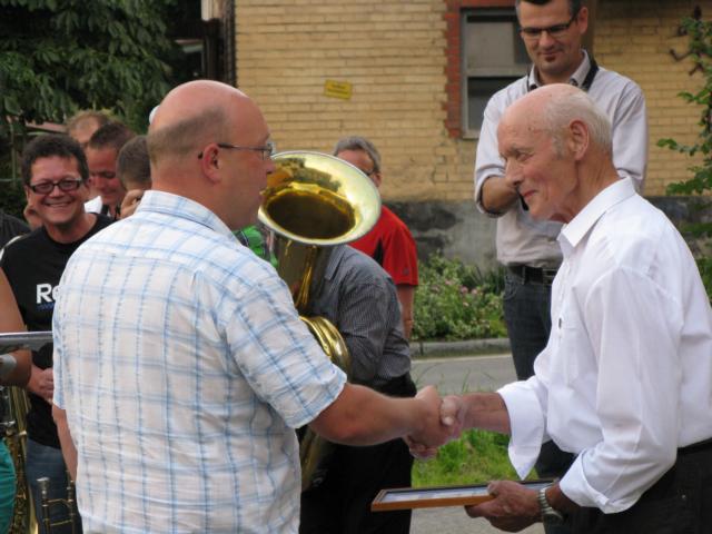 Anllässlich seines 80sten Geurtstag wurde Ambros Heumoos für seine 60 Jahige aktive Musiker Zeit durch Thomas Räth seine Ehrung überreicht